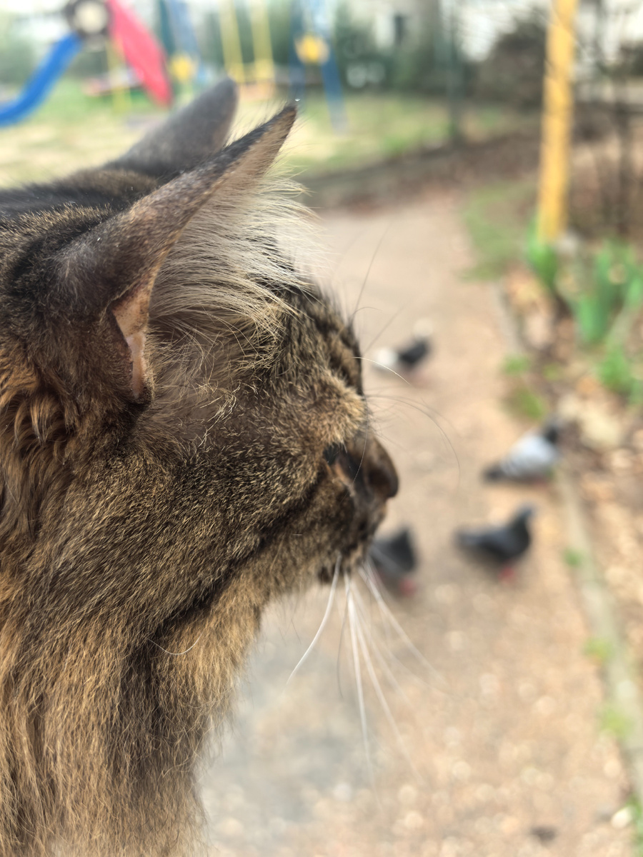 Всем привет! С вами Кузя Кусалочкин и сегодня я расскажу как вышел погулять и кому достался сюрприз. Утро началось с паштетика. Хозяйка вскрыла последнюю пачку. Что-то всё заканчивается, подозреваю, что людишкам моим надо будет завтра по магазинам ехать. Наполнитель мне хозяйка последний досыпала, мяско заканчивается, паштетик последний открыли. Надо всё срочно ехать покупать. Паштетик я поел, но было мало. Просто, если вы помните, хозяйка мне пачку делит на 3 или 4 раза, говорит, что много нельзя. Ходил, просил что-то ещё дать. В итоге мне досталась последняя вкусная палочка и я с удовольствием съел её. После такого вкусного утра пошёл спать. Пока спал, хозяйка куда-то собралась и ушла. Вернулась хозяйка. А мне очень хотелось на улицу. В итоге взяла меня хозяйка на руки и вынесла гулять. Гуляю я всегда на руках у хозяйки, ходить самому не разрешают. Фото только такое получилось: Сразу прибежали коты, думали, что хозяйка их кормить будет. Просто она им мои недоедки выносит и пакет