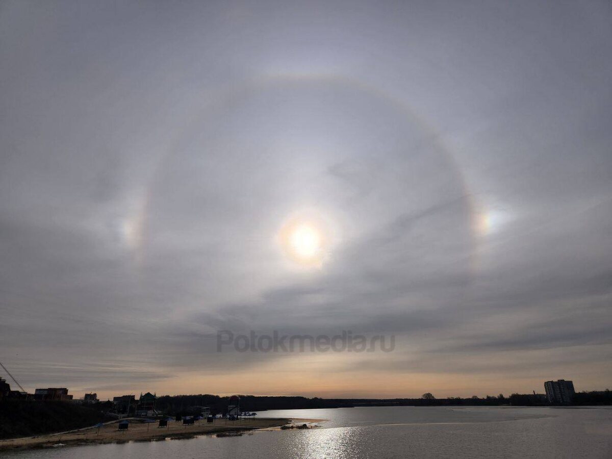 Напомним, что это оптическое явление, когда вокруг Солнца возникает свечение, чаще всего в форме окружности. Оно возникает в прохладную погоду при повышенной влажности у земли, а также в верхних слоях тропосферы, в 5–10 км над поверхностью планеты.