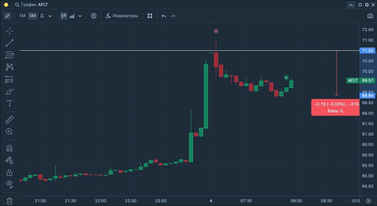 $AFLT - шорт от сильного уровня сопротивления, вход с открытия, итог +3%.