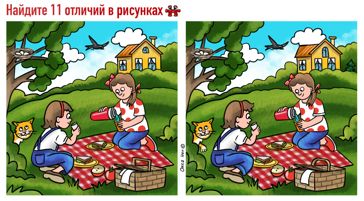 Когда наступают по-настоящему тёплые деньки, хорошо выбраться на природу. Сегодня отличия спрятались на картинке, где дети отдыхают на пикнике. Между этими картинками есть целых 11 различий. Не все из них найти будет легко . Удачи :)