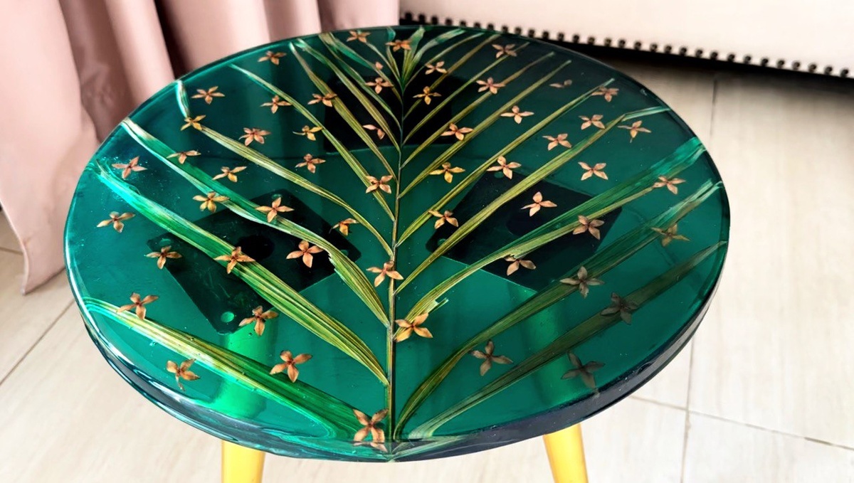 Как это сделать: ✅ Плюсы: ❌ Минусы: Этот метод применяется на этапе заливки эпоксидной смолы и подходит для столов с высокими нагрузками.