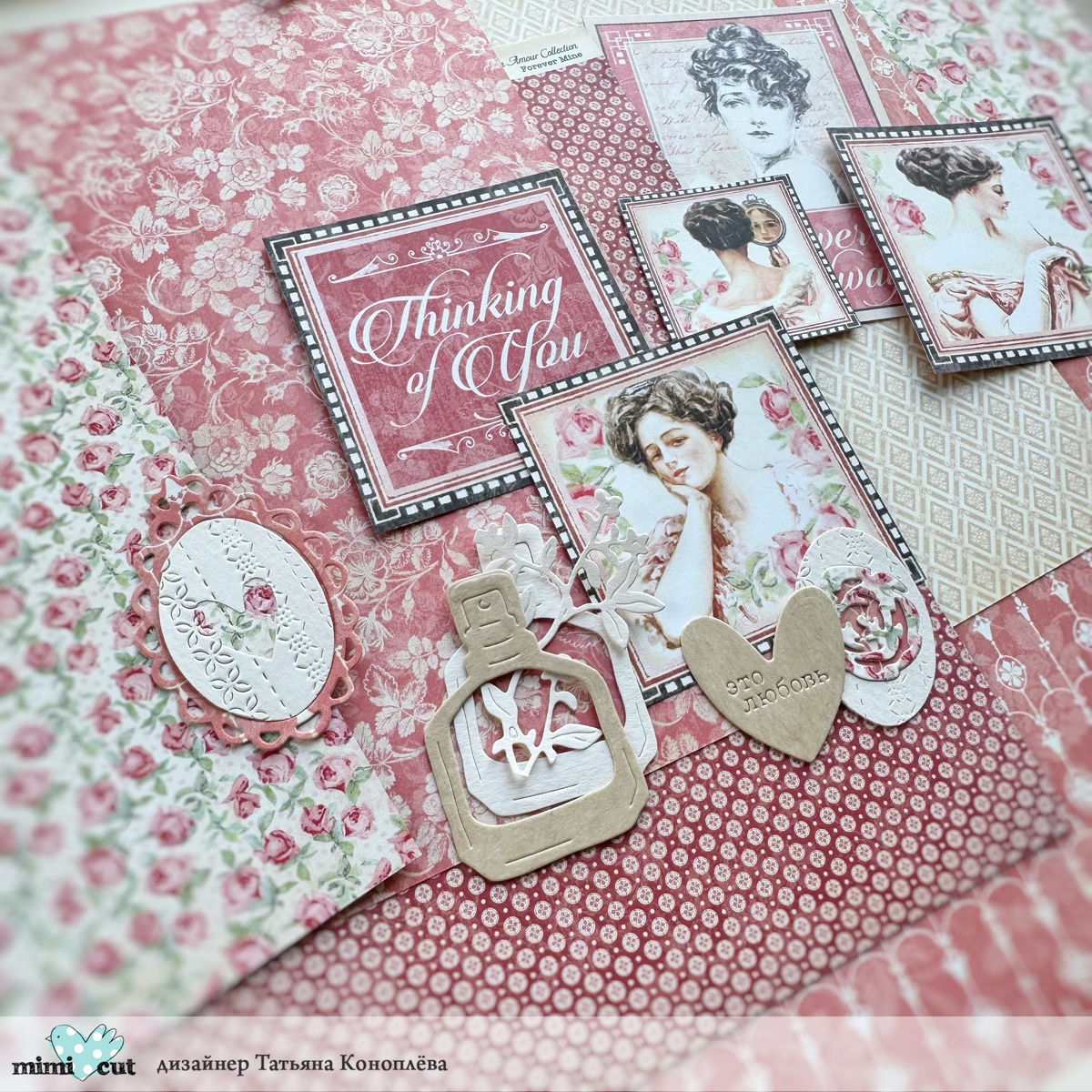 Итак, немного расскажу что же у меня будет за проект и как он родился. Тут все просто - всему виной нож-шкаф из нового набора «Что скрывает шкаф». А именно, шкаф с тканевыми шторками- уж так мне хотелось примерить его в работу, что родилась идея романтичного альбома. Благо и бумага подходящая быстро нашлась в закромах). Когда как не весной, в воздухе витает романтичное настроение и так хочется им делиться со всеми окружающими!