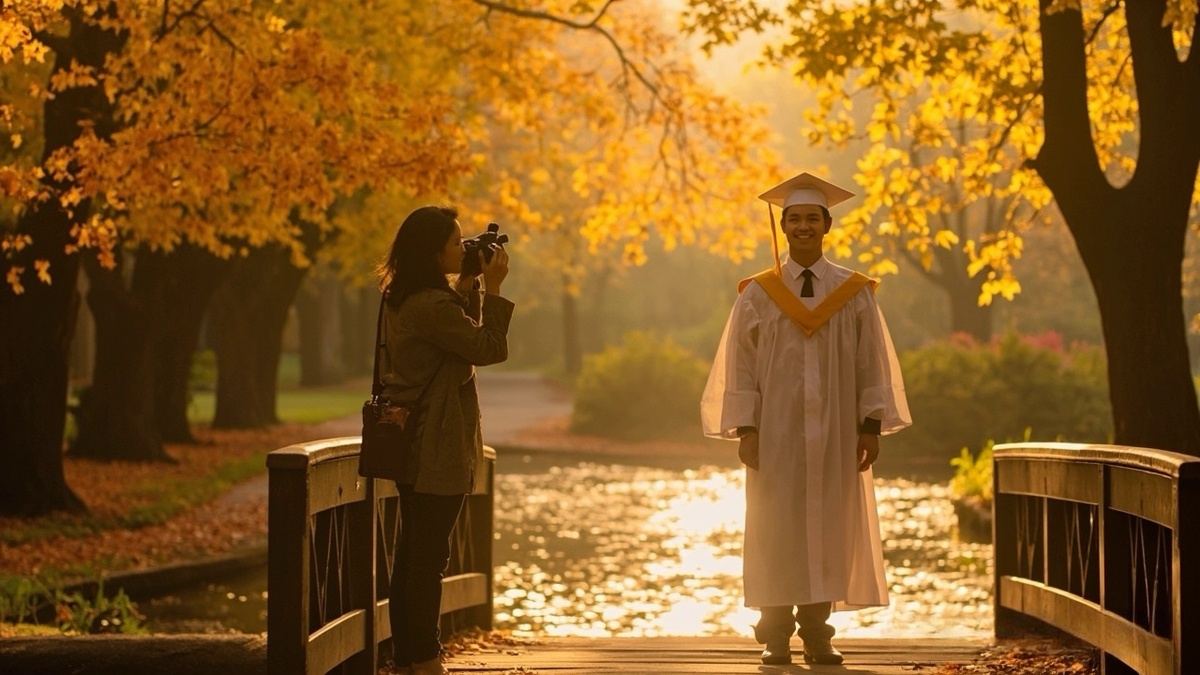 Это был тёплый осенний день. Солнце светило ярко, но в воздухе уже чувствовалась лёгкая прохлада, напоминающая о приближении зимы. Я только что получила новый объектив — шикарный портретник, о котором давно мечтала. Но перед тем, как использовать его на платной съёмке в выходные, я решила протестировать его в деле. Я написала своему другу Саше, который раньше не раз позировал для моих проектов: «Привет, Саш, у тебя есть свободное время завтра? Хочу потестить новый объектив, нужна модель». Он ответил почти сразу: «Конечно, Ангел, я как раз свободен». На следующий день мы встретились в парке. Листья уже начали желтеть, и золотистый свет солнца создавал идеальную атмосферу для съёмки. Я настроила камеру, проверила свет, и тут Саша появляется... в полном выпускном облачении! Мантия, шапочка, всё как положено. Я рассмеялась: «Саш, ты серьёзно?» Он улыбнулся: «Ну а что? Ты же хотела тестовые снимки, а я подумал, почему бы не убить двух зайцев сразу?» Мы начали съёмку. Саша позировал у