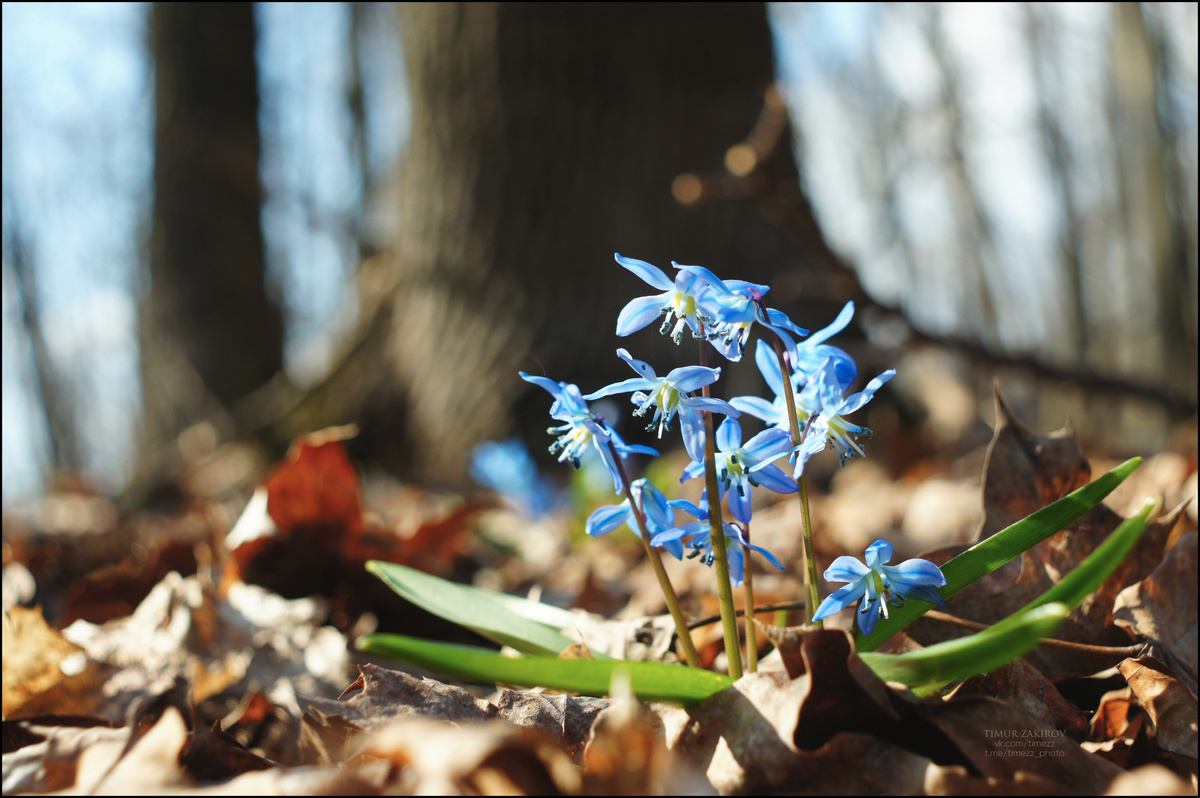 В этом году, похоже, не будет традиционного синего ковра. Немного страшно, что многие растения погибли этой зимой, и синего ковра не будет не только в этом году. Остается надеяться, что нет только эффекта обильного цветения, потому что цветы расцветают не одновременно, и растянувшись по времени, текущее поколение обеспечит ковер на следующий год. А пока я выгадал день, когда солнце приятно пригревало спину, и поснимал одиночек. Надо ж как зажрался, ковра нету мол, цветов мало мол, фу. Хорошо что они вообще есть. Даже оригинально как-то. Захотелось солнышка поймать прямо в кадр. Блики натуральные - это характерное поведение Мир 1В в контровом свете. Эти кадры я, вроде бы, не собираюсь публиковать в других местах отдельным постом, как будто хватит и остальных. Но как часть статьи здесь добавлю Пролеска сибиркая (Scilla siberica) в Воронежской Нагорной дубраве