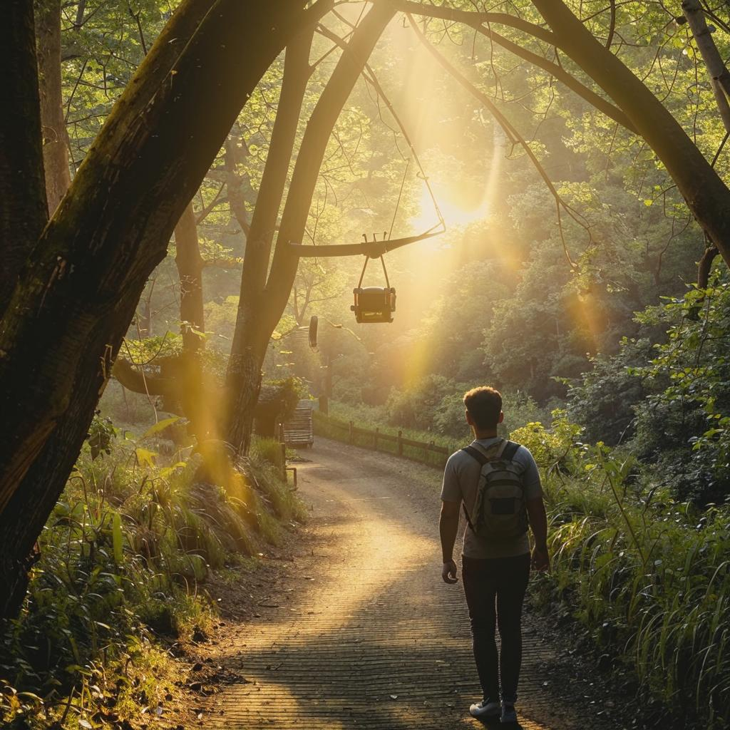 В небольшом городке, затерянном среди зелёных холмов и больших лесов, жил молодой человек по имени Андрей. Он всегда был мечтателем и искал вдохновение в необычных местах. Каждый вечер, уходя из своей маленькой квартиры, он отправлялся на прогулки в лес, где проводил часы, наблюдая за природой и фантазируя о далеких странах и чудесах. Однажды, когда солнце скрывалось за горизонтом и небо окрашивалось в пурпурные и золотистые тона, Андрей заметил что-то необычное. Параллельно с тем, как он углублялся в знакомую тропинку, его внимание привлекла необычная птица. Это была летяга — она парила в воздухе, свободно и грациозно, пронзая вечерние сумерки. Её движения были легкими и почти волшебными. Словно завороженный, Андрей наблюдал, как она стремительно передвигается, оставляя за собой лёгкий светящийся след. Любопытство толкнуло его следовать за ней, и вскоре он потерял счёт времени и расстоянию, углубившись в лес. Летяга казалась ему необычной, и когда он наконец приблизился, то заметил, ч