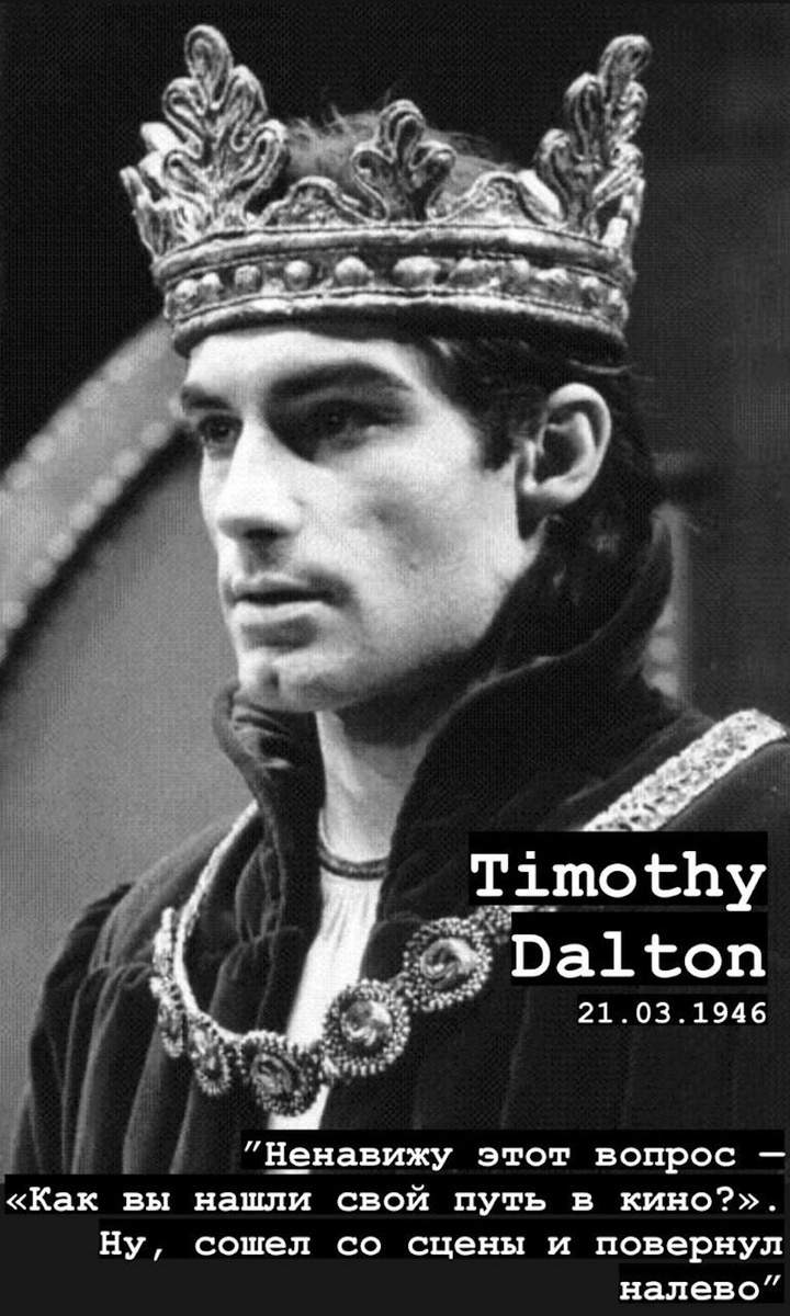 Сегодня предлагаю вспомнить актера Тимоти Далтона, которому несколько дней назад исполнилось 79 лет. Удивительно органично вписавшемуся в роли персонажей разных стран, эпох и культур. Ему удалось мастерски воплотить на экране роль любимого героя из романа Шарлоты Бронте, он играл королевских особ, римских полководцев и даже примерил на себя костюм и судьбу Агента 007 – Джеймса Бонда. Карьера артиста продолжается более пятидесяти лет. Он играл в самых разных жанрах – от драмы до приключений. Определенно послужил этому успеху театральный опыт, так как профессию для себя 15-летний Тимоти «предопределил» после посещения спектакля «Макбет». В 1964 году он поступил в Королевскую академию драматического искусства, в Театре Королевы играл в постановках пьес Уильяма Шекспира, служил актером Бирмингемского театра и на протяжении пары лет был ведущим в труппе. Сегодня также предлагаю выбрать себе эпоху, героя и жанр по вкусу, тем более что в актерской судьбе Тимоти Далтона действительно есть «где