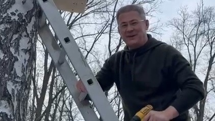 Глава Башкирии Радий Хабиров опубликовал в своих соцсетях видео. Он показал своим подписчикам, как проводит выходной. — Ну что, весна? Первый скворечник повесили, — сказал он, стоя на приставной лестнице возле дерева с шуруповертом в руках. Этот скворечник руководителю республики подарили на день рождения курсанты в парке «Патриот».