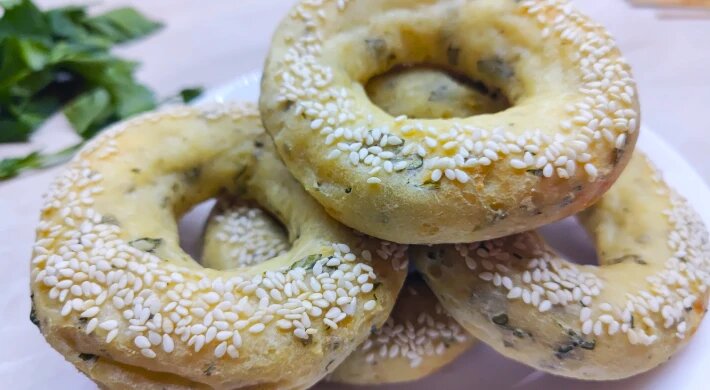 Сырно-творожные бублики – это небольшие колечки из теста на основе творога с добавлением тёртого сыра и зелени, запечённые в духовке. Они получаются мягкими внутри, с лёгкой хрустящей корочкой снаружи благодаря кунжуту. Это отличный вариант для перекуса, завтрака или дополнения к чаю. Рецепт простой, не требует сложных продуктов и много времени. Примерная калорийность блюда рассчитана на весь объём (около 500 г готовых бубликов): Итого: около 875 ккал на всю порцию. Если разделить на 5 бубликов, то один будет содержать примерно 175 ккал. Все ингредиенты простые и доступные, их легко найти в любом магазине. Шаг 1/15 Творог переложите в глубокую миску. Если он слишком влажный, слегка отожмите его через марлю или сито, чтобы убрать лишнюю жидкость. Шаг 2/15 Сыр натрите на мелкой терке Шаг 3/15 В миску с творогом и сыром добавьте яйцо Шаг 4/15 Петрушку тщательно промойте, обсушите бумажным полотенцем и мелко нарежьте Шаг 5/15 Всыпьте нарезанную петрушку и сушеный чеснок. Тщательно перемеша