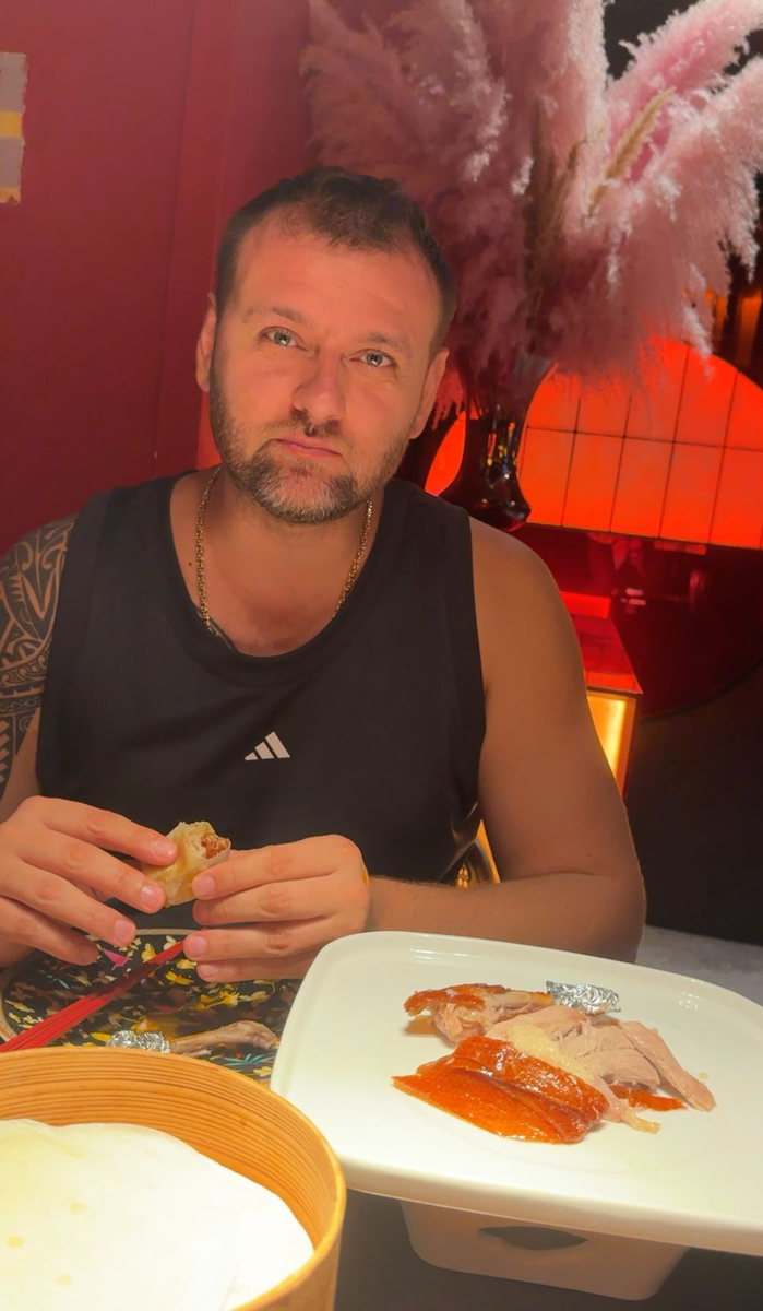 Во время нашего путешествия на Хайнане - мы решили поужинать в ресторане 1981 (это было наше первое путешествие на Хайнань). 7 сентября был день моего рождения (как отмечали - смотрите здесь) - поужинать решили именно в этом ресторане - так как по отзывам это был один из лучших ресторанов, где можно попробовать вкусную утку по-пекински. Это был наш первый опыт с эти блюдом)) Меню - как и везде - на китайском (переводчик в помощь) Конечно же , приехав в Китай, мы хотели попробовать вкусную утку по - пекински, поэтому мы ее и заказали. Подача очень интересная: су-шеф привозит тележку- на которой при вас разделывает утку и подает с различными соусами - конечно же , это очень вкусно - утка, не просто запеченная, она глазированная в специальном соусе, который дает слегка сладкую хрустящую корочку- рекомендуем обязательно попробовать! У китайцев принято кусочки утки заворачивать в тонике лепешки - добавляя соус, зелень и овощи. Еще мы заказали несколько фирменных блюд: куриные желудки, сало
