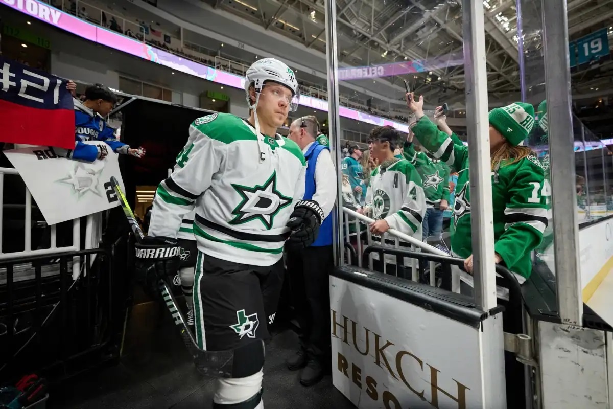 Выбор в 1-м раунде драфта-2025, условный выбор в 4-м раунде драфта-2025 (станет выбором в 3-м раунде, если «Даллас» дойдет до финала Кубка Стэнли) —> «Сан-Хосе»