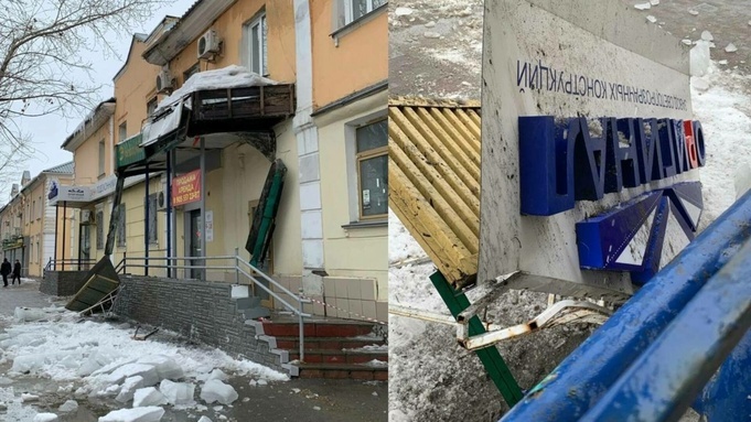 В Барнауле ледяная глыба снесла вывеску и рухнула на оживленный тротуар