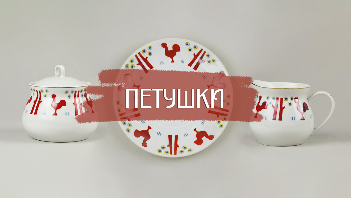 Молочник из сервиза «Петушки». 1962 год, Довбывшский фарфоровый завод. Автор формы Николай Васильевич Коломиец, автор росписи М. Лугонько