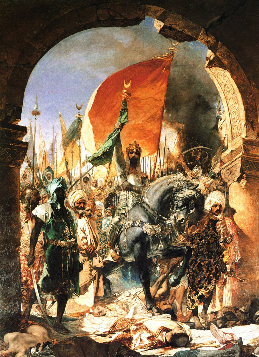 Константинополь пал Защитники убиты... Султан въезжая в город На белом скакуне Со свитою своей, Смотрел на место брани И взор его был мрачен Как тучи при Луне. Скакали янычары По улицам столицы Недавно величавой Но,испытавшей рок Принявших на себя Удар за всю Европу Всевышний испытанию Защитников обрёк. Последний император От раны обессилев С мечом в руках,шатаясь Сражался Константин Воскликнул император Есть братья здесь по вере? Так обезглавьте братья А не враги меня! Так погибал правитель Империи великой С печалью и отвагой Сражаясь до конца Да,Византия пала Но Вера и культура Потомков впечатляет Не уронив венца...