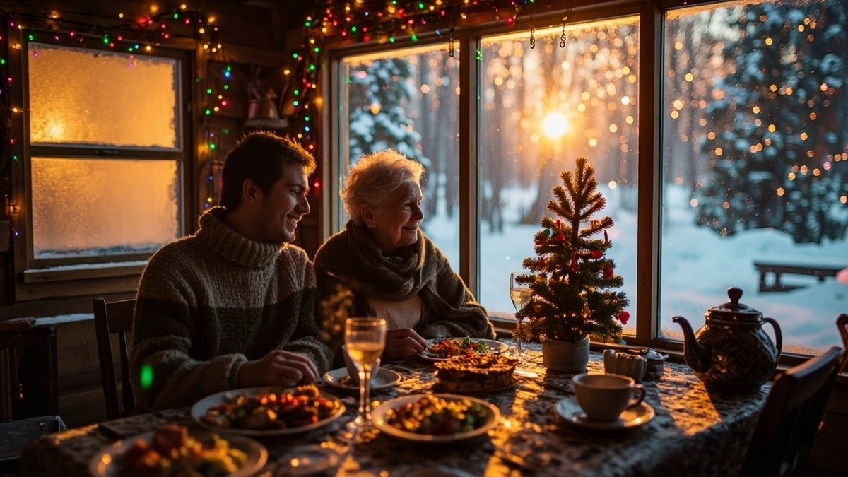 Я никогда не думал, что встречу Новый год в таком месте. Еще год назад я сидел в своей маленькой квартирке в Бостоне, смотрел на огни города через окно и думал, что жизнь проходит мимо. Но сейчас я здесь, в России, в деревянном доме на окраине Суздаля, где снег лежит так густо, что кажется, будто весь мир укрыт белым одеялом. Новый год в России — это что-то особенное. Бабушка Татьяна, у которой я снимаю комнату, начала готовиться к празднику еще за неделю. Дом наполнился ароматами мандаринов, имбирного печенья и свежей хвои. Она украсила комнату гирляндами, а на стол поставила маленькую елку, которую мы нарядили вместе. "Сережа, ты должен почувствовать, как это — настоящий русский Новый год!" — говорила она, улыбаясь. 31 декабря началось с мороза. Минус двадцать, и воздух такой холодный, что дышать больно. Но в доме было тепло и уютно. Бабушка Татьяна весь день готовила: на столе появились оливье, селедка под шубой, холодец и, конечно, шампанское. Я помогал ей накрывать на стол, а она