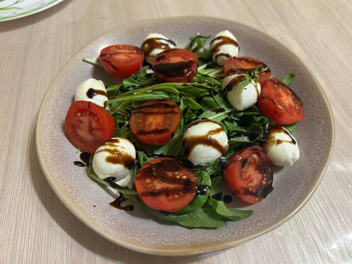 Привет, друзья! 😊 Весна уверенно вступает в свои права, а вместе с ней на рынках появляется всё больше свежей зелени и овощей. Конечно, они есть круглый год, но именно сейчас – пик свежей местной продукции. Поэтому сегодня готовим быстрый и лёгкий весенний капрезе, но не классический с базиликом, а с рукколой! Ведь именно она сейчас в изобилии. 🥗 Приступим!🚀 ✅ Подготовка ингредиентов 🔹 Промываем рукколу и томаты черри.