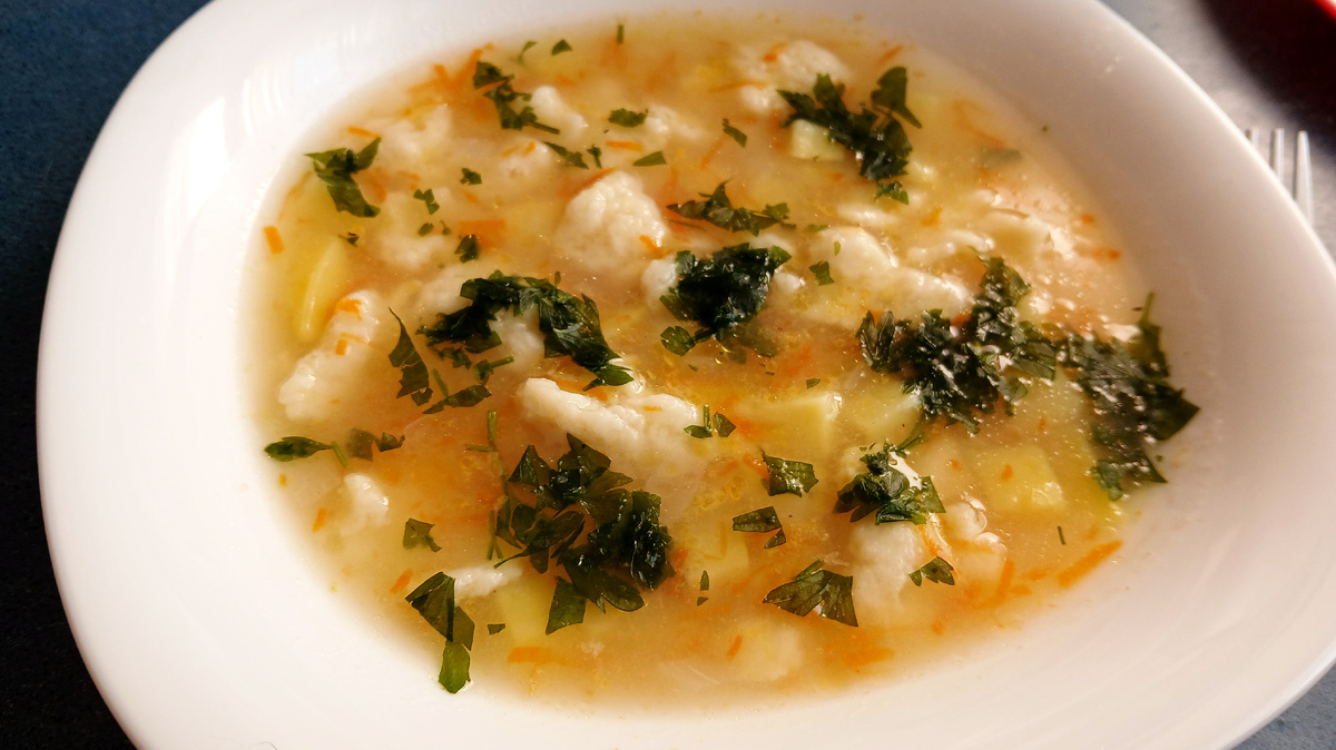 Сегодня статья, что называется, "навеяло". У меня иногда так бывает: готовила одно, а продукты остались и получается приготовить ещё что-то. Иногда это что-то выходит вкуснее, чем то, ради чего вся готовка и затевалась. Вот как с примером ниже. Мои дети очень любят суп с клёцками и с галушками. На галушки я решаюсь редко, в основном только руками моей мамы. Когда приезжает она и на суп, и на заморозку их делает. А я варю с клёцками, знаю несколько видов, но есть любимые. Они и самые вкусные и готовятся проще всего. Тесто на клёцки: 20 грамм размягчённого сливочного масла растереть с 1 яичным желтком, постепенно ввести 130 грамм молока и по ложке насыпать муку. Тесто должно получиться довольно крутым, а сколько его брать - не подскажу, потому что полностью полагаюсь на своё чутьё. Не забудьте тесто посолить. Можно добавить зелень или копчёную паприку - и вкус изменится, и цвет. Хорошенько вымешиваем, чтоб тесто получилось однородным. У нас же ещё остался белок, его вилочкой взобьём в пе