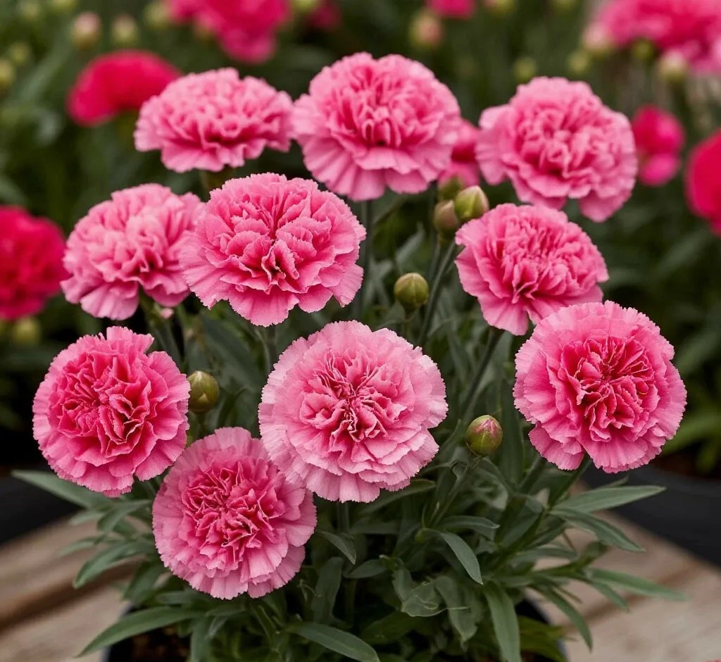 Здравствуйте! Сегодня мы полноценно начали рассадный сезон 2025. В нашей новой теплице появились первые кашпо, и это подвесы с ампельной гвоздикой.Правда, пока есть на полках немного свободного места, они еще не совсем подвесы, но это ненадолго))). В этом году мы решили высаживать все зелёные растения в белые кашпо объёмом 4,5 литра. На наш взгляд, они будут выглядеть более красиво и эстетично, чем коричневые. Однако стоит учесть, что перед продажей кашпо придётся мыть. Почему было решено пересадить гвоздику первой? Дело в том, что она растёт медленнее других растений, и её первые цветы нужно ждать дольше. Черенок гвоздики уже достаточно окреп и нарастил корни. В одно кашпо сажаем по пять черенков, чтобы наши кашпо были пышнее и быстрее наросли. В будущем они переплетутся корнями, и это будет одно растение.Удивительно, но каждый черенок, вырастая, будет считать, что все пять литров земли в кашпо — это его территория. Они не будут мешать друг другу и даже не заметят, как станут одним це