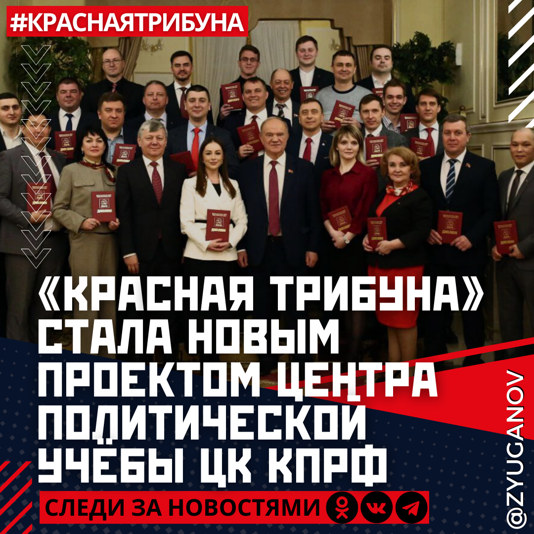 «Красная трибуна» стала новым проектом Центра политической учёбы ЦК КПРФ. Председатель Центрального Комитета Г.А. Зюганов вручил дипломы выпускникам этого специализированного потока и напутствовал их на активное участие в достижении задач партии.