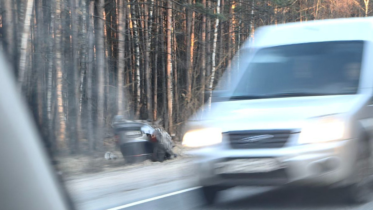 На фото видно, что у одной машины повреждена передняя часть. Другой автомобиль лежит вверх колесами в канаве.
