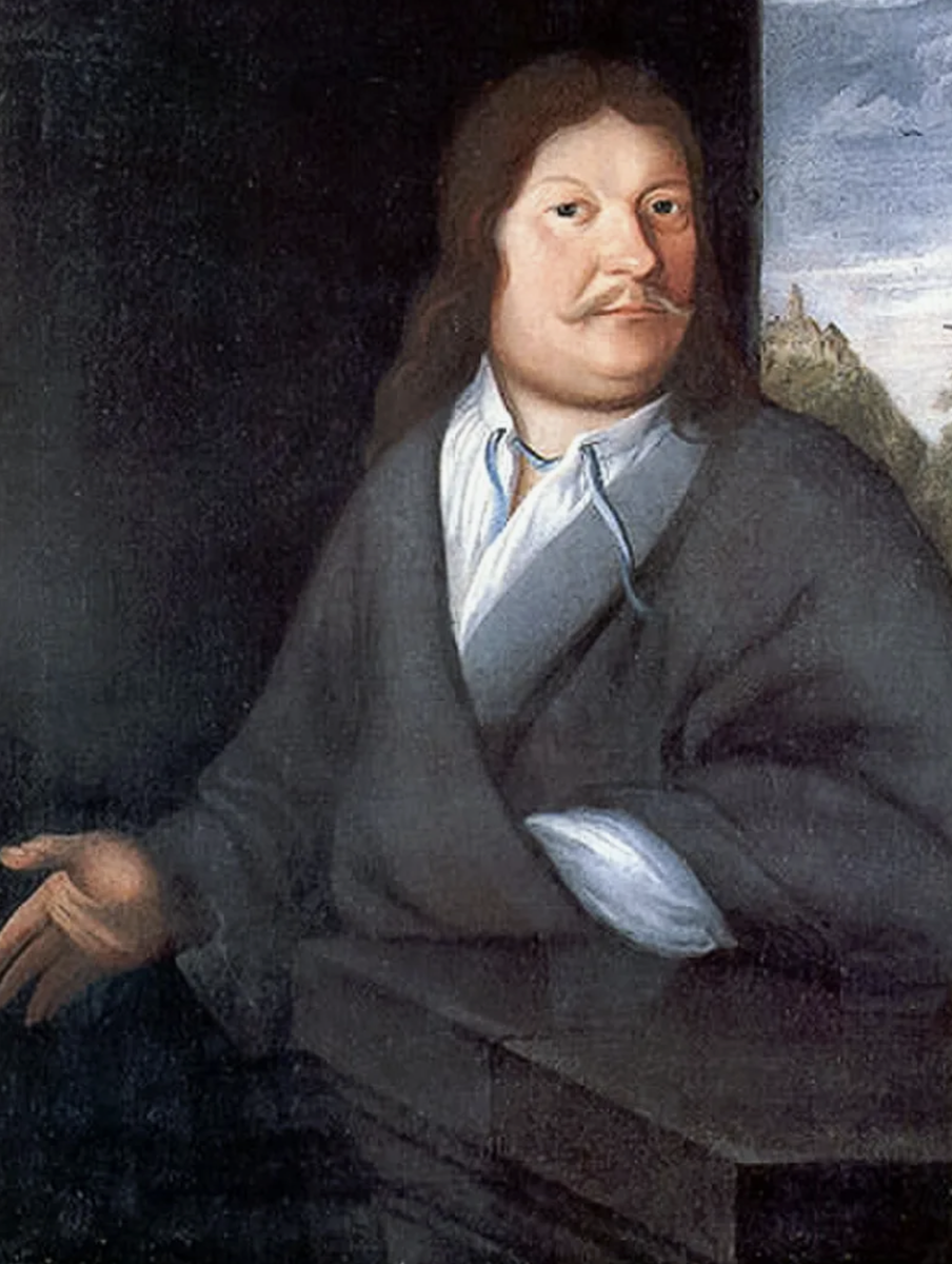 Широкое лицо с массивными красными щеками, второй подбородок, поглотивший первый, выдающийся нос, обвисшие усы и длинные, ниже плеч, каштановые волосы на прямой пробор. Посади такого на Октоберфест, надень войлочную шляпу с перьями фазана, и не отличишь от толпы. Но наш герой из другого времени, он из второй половины 17 века. Тогда ещё не додумались до пивных фестивалей, хотя пиво лилось рекой, и жареные сосиски уже были супер-популярны. Знакомьтесь: достопочтеннейший господин Иоганн Амброзиус Бах, отец Иоганна Себастьяна. Этот портрет — его единственное изображение. На нём Амброзиусу лет 40, он одет в так называемое «парадное неглиже»: ночная сорочка из тонкой ткани, кокетливая оборка у горла и уютный домашний халат. Всё дышит достатком и благополучием: музыкант Бах на хорошем счету и у местного герцога и у магистрата города Айзенах. «Он играет на скрипке, гобое, флейте, трубе, валторне и басах…», — напишет в родословной автор «Искусства фуги». У многостаночника огромная сфера деятель