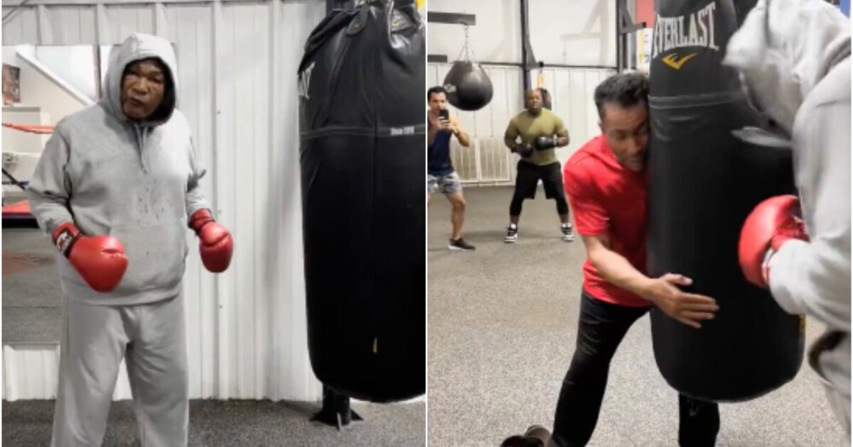 Бывший абсолютный чемпион мира по боксу в тяжелом весе, которому в январе 2023 года исполнилось 74 года, снова примерил перчатки. Форман исполнил серию боковых ударов, удивив мощью всех, кроме себя.