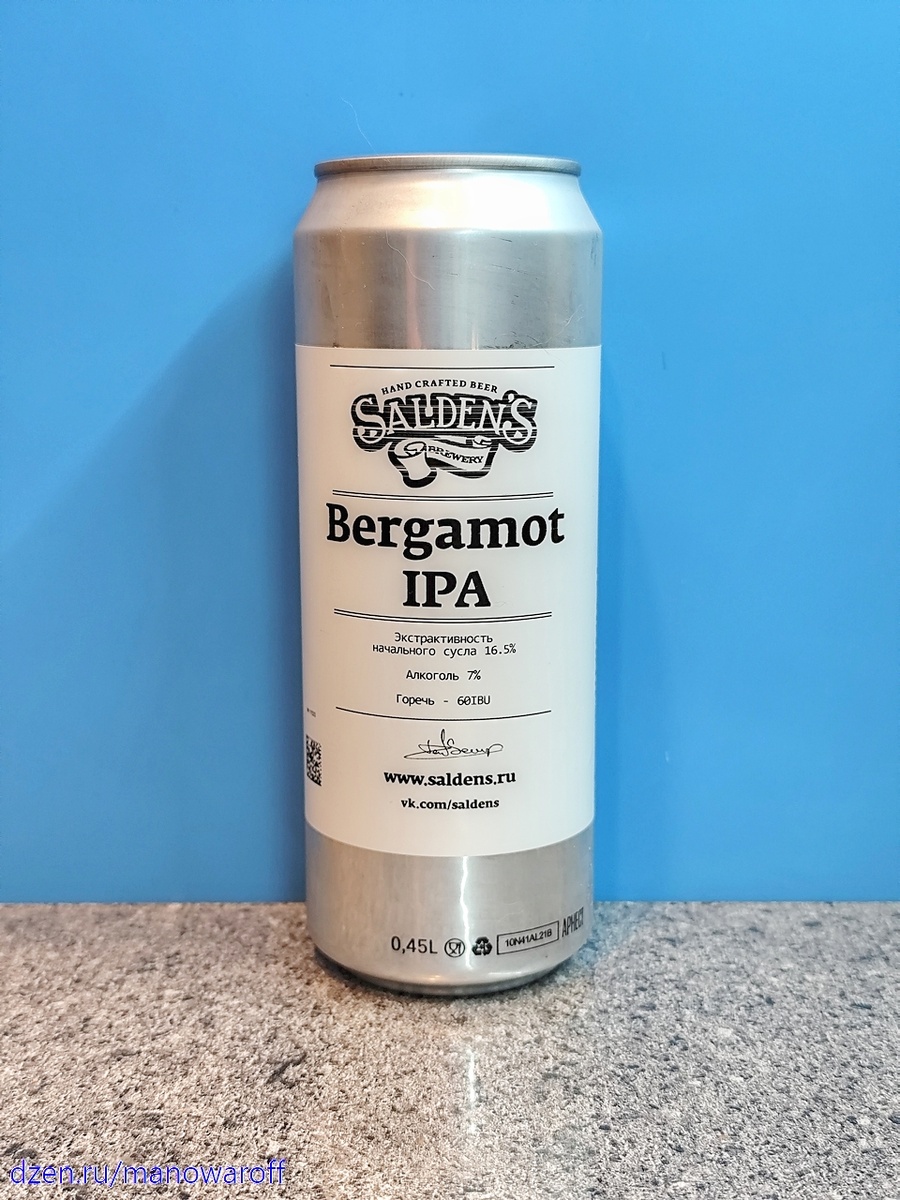 Нет, не чай, а именно пиво. Сегодня у нас пивоварня Salden's Brewery (кстати, Дениса можно поздравить - в прошлом месяце он сварил семисотый сорт пива (ожидалось, что это будет нечто особенное, но оказалось, что это черносмородиновый смузи)) со своим пенным под названием Bergamot IPA.