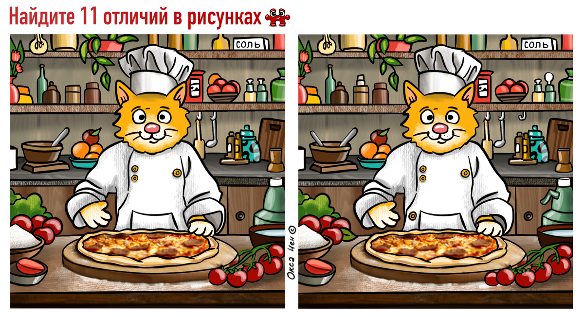 11 отличий на веселых картинках. Тест памяти и внимания для отличного настроения.