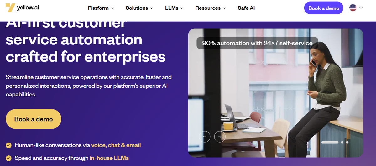 Yellow AI — нейросеть, разработанная для автоматизации клиентского обслуживания в крупных компаниях. Платформа ориентирована на обработку запросов через голосовые звонки, чаты и электронную почту, используя собственные языковые модели. Ее главная задача — обеспечивать быстрые, точные и персонализированные ответы, что делает ее эффективным инструментом для оптимизации общения с клиентами. Без излишних сложностей она справляется с большим объемом обращений, минимизируя ручной труд в контактных центрах и ускоряя бизнес-процессы. Система способна автоматизировать до 90% запросов, что заметно разгружает сотрудников. Поддержка работает 24/7, решая вопросы без промедлений. Yellow AI покрывает 35 платформ — мессенджеры, соцсети и другие каналы, чтобы клиенты могли писать туда, где им удобно. Агенты на базе ИИ знают 135 языков, распознают эмоции и адаптируют общение под конкретный случай. Для подключения к существующим процессам предусмотрено более 150 готовых интеграций. Это позволяет быстро н