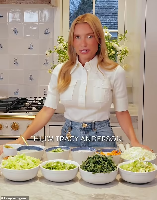 Любимицу фитнеса Трейси Андерсон обвинили в том, что она затмила Меган Маркл в новой рекламной кампании Гвинет Пэлтроу Goop. Эксперт по фитнесу, основавшая любимый знаменитостями метод Трейси Андерсон, похоже, высмеяла герцогиню, представив новый салат «Зеленая богиня Трейси» в партнерстве с Goop Kitchen, новой ресторанной империей Палтроу, работающей только на доставку. Занятия Андерсон рекламировала не только сама Пэлтроу, но и Келли Рипа, Дженнифер Лопес, Николь Ричи и даже Гарри Стайлз. Членство в элитной программе стоит 900 долларов в месяц с единовременной оплатой в размере 1500 долларов. Однако, похоже, Андерсон нашла себе новое хобби на кухне: она объяснила, как приготовить её новый салат, в видео, которое было опубликовано на страницах Goop и её самой в Instagram. Она начала ролик с того, что сказала зрителям: «Привет, я Трейси Андерсон, и добро пожаловать на мою настоящую кухню», сделав паузу для драматического эффекта. Многие зрители подумали, что это намёк на Маркл, которая