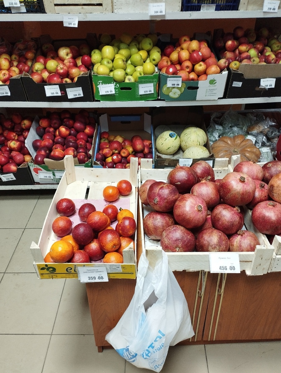 Для меня самый интересный момент связан с фруктами и овощами. Опять же, если говорить про сетевые магазины, то цена у них невысокая, только каждый раз не знаешь вкусными ли будут фрукты и овощи. В "Перекрестке" мне попались шикарные апельсины по 149 рублей/кг, в "Пятерочке" я купила хрустящие и сладкие яблоки за такую же цену, но при этом были и абсолютно безвкусные груши, сухие не сладкие мандарины, да даже яблоки попадались такими, что никто их не ел.