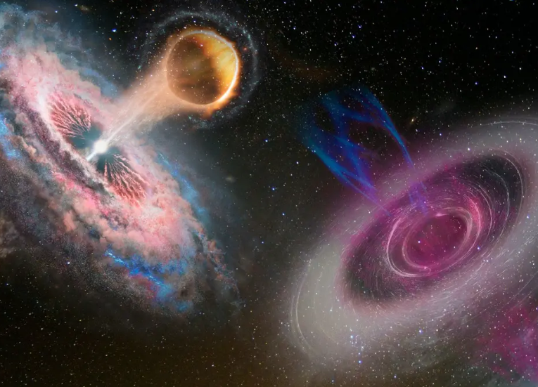 Что касается Млечного Пути, в его центре находится черная дыра Стрелец А* (Sgr A*), масса которой составляет около четырех миллионов солнечных масс. В настоящее время Sgr A* неактивна, но если она поглотит звезду или газовое облако, это может привести к активации и выбросу мощных радиоструй. Примеры подобных событий уже наблюдались в других галактиках, где звезды разрывались черными дырами.