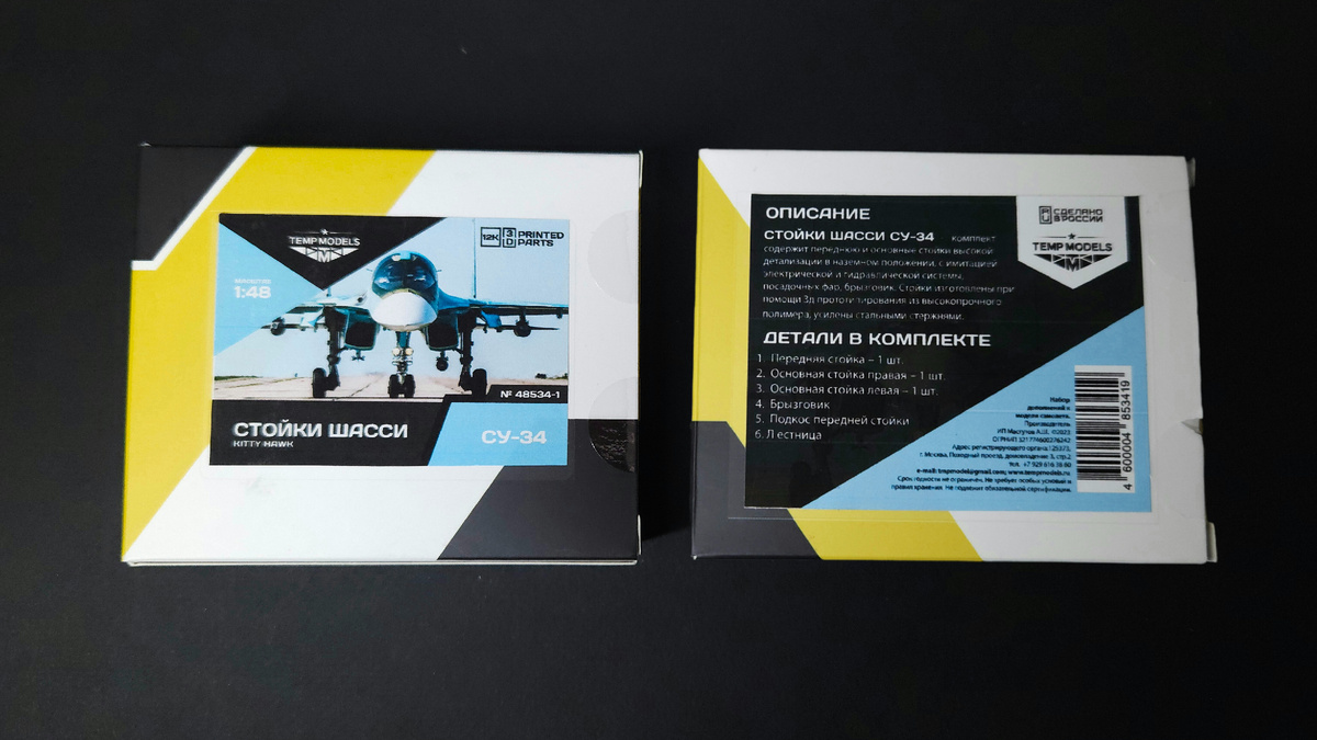 Всем привет! Продолжаю работы с моделью самолёта Су-34 в масштабе 1/48 от фирмы Kitty Hawk. В данной покрашу контейнеры стойки шасси от фирмы Tempmodels. Комплект выполнен по технологии 3д-печати. В комплекте: передняя опора шасси, основные опоры шасси, грязезащитный щиток, лестница, подкос передней стойки, металлические штыри для придания стойкам прочности. В целом набор выполнен качественно. Есть пара вопросов к поддержкам. Например, поддержки квадратного сечения вдоль нижней поверхности тележки основных опор шасси. Крайне неудобные в удалении, скалываются вместе с частями самих тележек. Неудобны для последующей зачистки. Также сливаются с проводкой, идущей по нижней части тележки. В данном месте вполне справятся и конические поддержки, но темпы используют такие. Второй непонятный момент - это переплетение и излишнее количество поддержек на фарах на передней стойке. Такое ощущение, как-будто поддержки расставляют не в ручную, а в автомате. Референсы: Заметил, что на моём бортовом ле