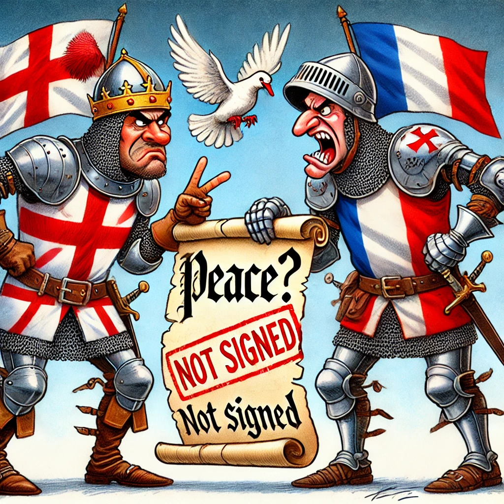 Столетняя война шла 116 лет. Франция победила, но никто не подписал мир. Технически, они всё ещё воюют. Сатира, факты, мемы — всё, как ты любишь. Представь: поссорился с соседом, прошло 116 лет, а ты всё ещё не решил, мир у вас или нет.