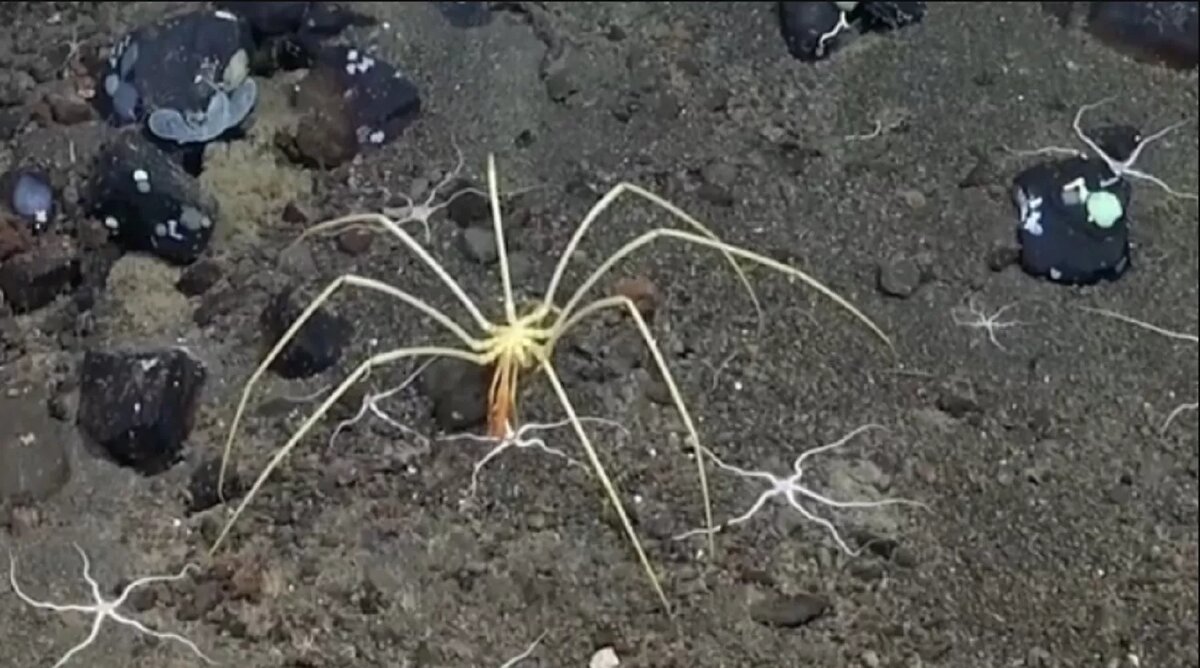 В пресс-службе фонда Schmidt Ocean поделились снимками, на которых можно рассмотреть огромных подводных пауков, размер которых превышает 50 сантиметров.
