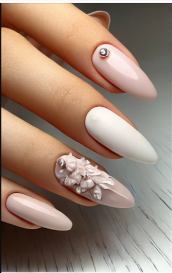 Автор: Мария Абеляр — эксперт в области маникюра и педикюра с более чем 10-летним стажем Светлый маникюр вновь на пике популярности в 2025 году. Он универсален, элегантен и подходит как для повседневной жизни, так и для особых случаев. Модные тенденции делают акцент на мягкие нюдовые тона, воздушные пастельные цвета и утончённый декор. Такие дизайны подчеркивают женственность, ухоженность и актуальность образа. Сегодня я покажу вам 5 потрясающих вариантов светлого маникюра, которые идеально вписываются в тренды года. Каждый из них – это эстетика, стиль и современность. Первый дизайн сочетает в себе пастельный голубой, нежный молочный и светло-розовый оттенки. Особое внимание привлекает акцентный ноготь с 3D-лепкой в виде белоснежного цветка. Это — отражение тренда 2025 на объёмные элементы и пастельную градиентность. Такой маникюр выглядит свежо, благородно и подойдёт для романтических натур. Этот дизайн выполнен в приглушённо-розовой гамме с добавлением белого акцента и прозрачного