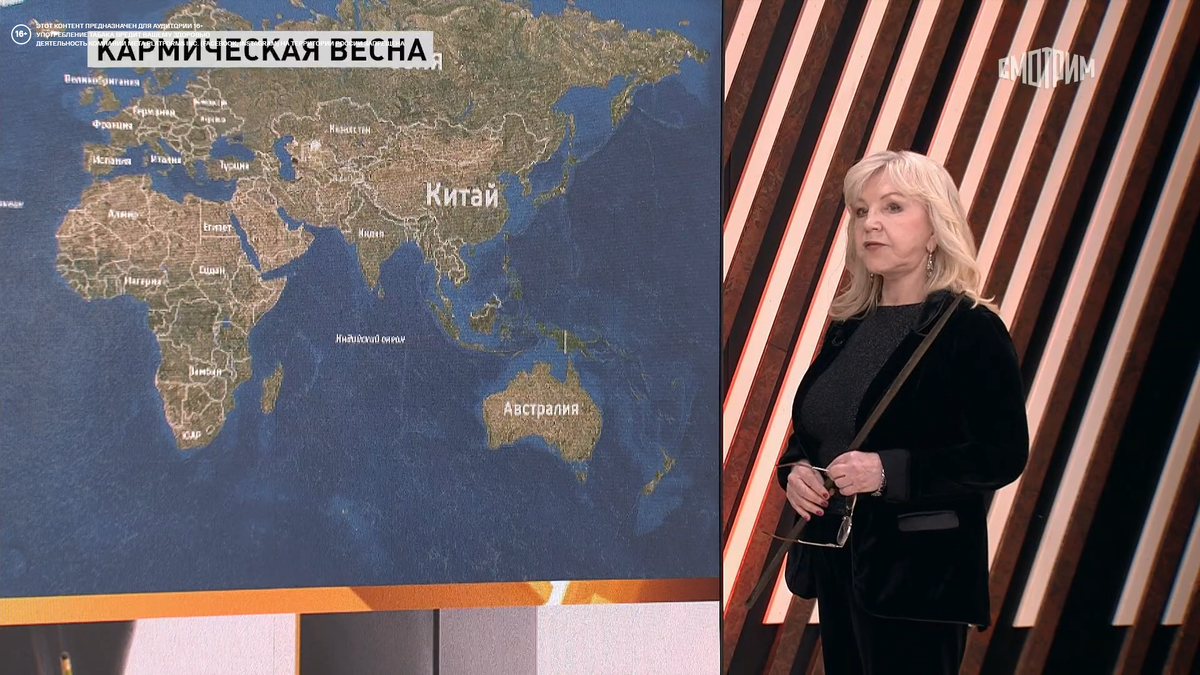 Ведущий спросил, есть ли у России какая-то глобальная миссия. Татьяна ответила, что у России есть своя кармическая миссия. Эта миссия - вести народы всего мира вперед.