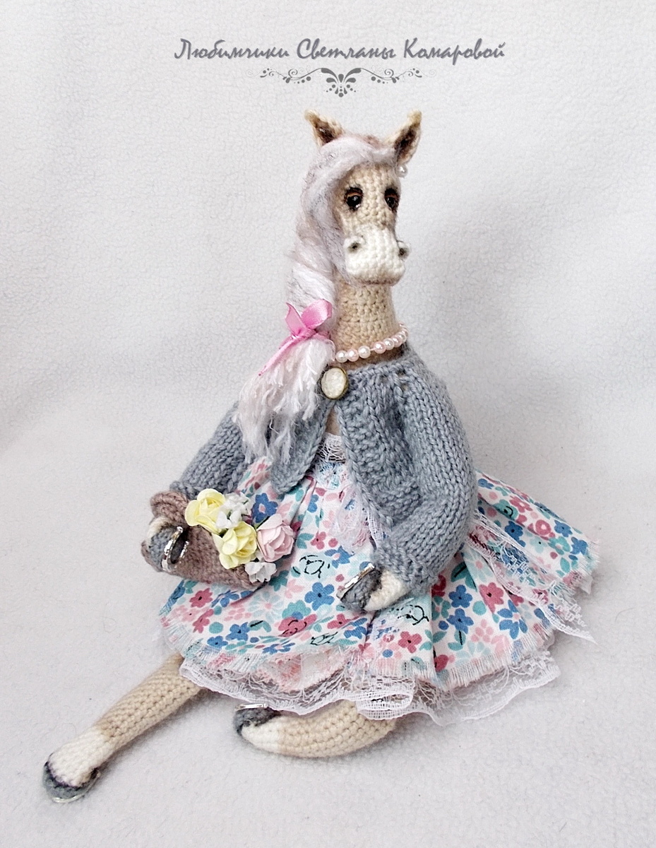 Общая высота у меня 25см, 17см сидя.Без шплинтов. Голова неподвижна, конечности ввязаны и сгибаются. Все замены материалов на своё усмотрение. В мк вязка лошадки, кофты/спицы и корзинки. Оформление подробное. Материалы: -нитки полушерсть Детский каприз(225/50гр)натуральный,серый и белый-ДК - Камтекс хлопок травка(кхт) бежевый,белый -кхт -крючок 1,5мм, спицы 1,3мм -глаза чёрные полу-бусины 4мм -наполнитель -секундный клей - тонировка-перманентный чёрный маркер и мас.пастель - липучка,украшалки. мк-250р Онлайн в апреле в телеге-