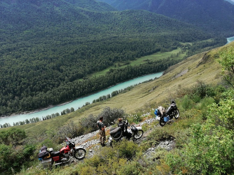 Конная тропа, в последствии которую пытались сделать в дорогу так и осталась дорогой лишь на картах. Вреальности это тропинка идущая по крутому склону, высоко поднимающаяся над рекой Катунь. Тропа по истине является Меккой для настоящих мототуристов и экстремалов! На всем ее протяжении нервы на пределе, концентрация внимания и напряжения сил! Это то, ради чего стоит поехать в этот тур! Вечером размещаемся на турбазе. Баня.