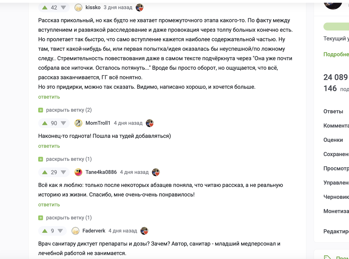 Вот, например, скриншот среза комментариев под одним из моих рассказов.