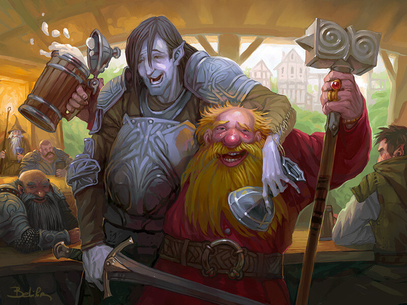 - "Я не в обиде, Снорри... Даже не смотря на то что ты чуть не размозжил мне голову своей кувалдой минуту назад. Сейчас нам, мой пьяный друг, нужно решить вопрос другого порядка... Ты вот правда верил что твой внезапный порыв тоски по родным пещерам Ханеранга останется только между нами?! Меня чуть не прирезали разгневанные орки пока ты пребывал в своём состоянии фрустрации!!"