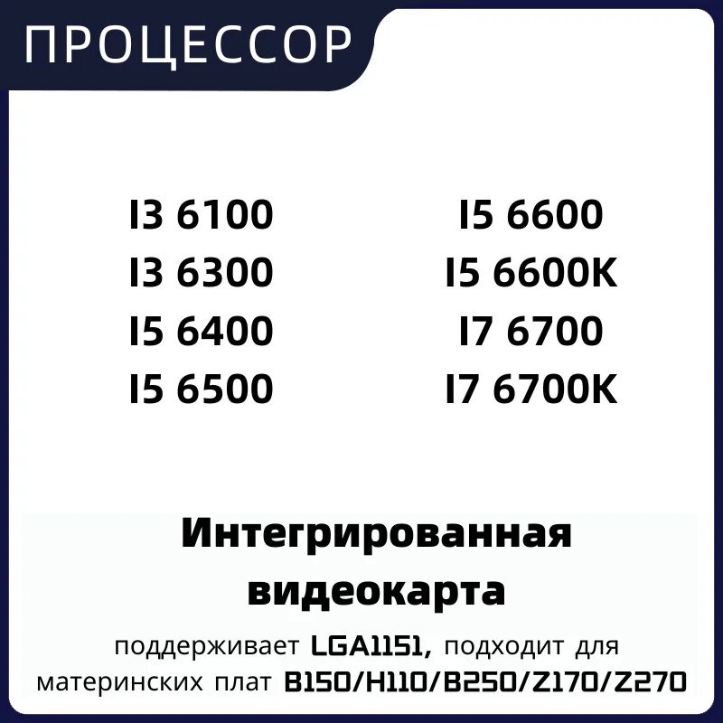 1. ⭐ Процессор I3 6100 6300 I5 6400 6500 6600K I7 6700K