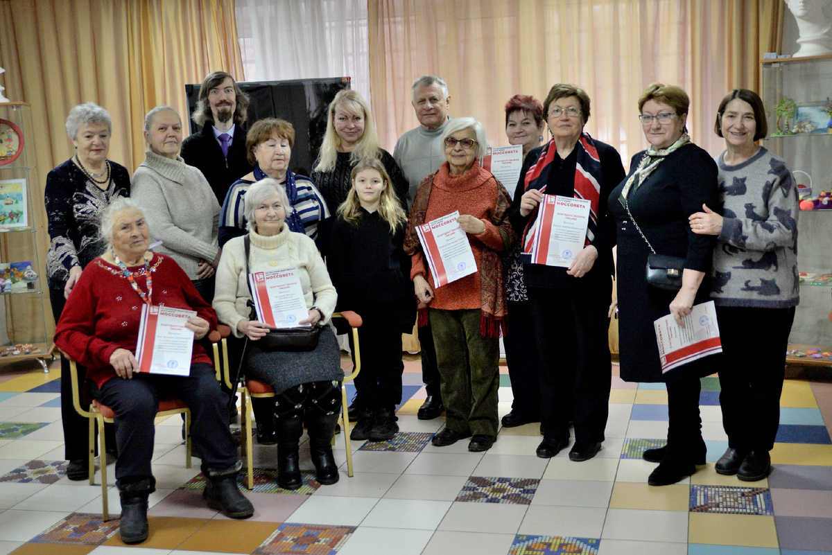 В клубе на ул. Молдагуловой, д. 12 к. 3 состоялось торжественное награждение участников художественной выставки "Снежный цветок" проекта "Московское долголетие". Художников поздравили руководитель территориального управления Вешняки ГБУ "ООЦ им. Моссовета" Ольга Александровна Кудинова и депутат муниципального округа Вешняки Виталий Владимирович Филипенков. Они отметили творческий и технический рост художников, мастерство и вкус при выборе тем. Пожелали не останавливаться на достигнутом и радовать вешняковцев своими работами. Отдельно отметили педагога, обучающего таланты, - Дмитрия Алексеевича Ульяненкова, ведущего занятия в группах по рисованию "Основы академического рисунка и живописи" и художественно-прикладного творчества "Подарки своими руками" проекта "Московское долголетие" в Объединении культурных центров Восточного административного округа (ОКЦ ВАО). Как отметила Ольга Александровна, Дмитрий Ульяненков на протяжении нескольких лет вносит огромный вклад в развитие культуры наше