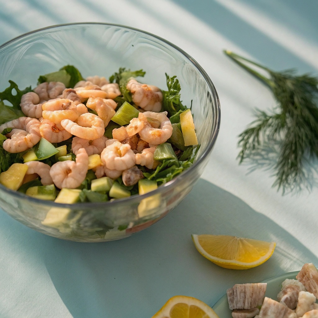 Подсказка по замене: Если креветки вам не по душе, попробуйте заменить их на морской окунь или кальмары. Авокадо можно заменить на нежный сыр фета для пикантной текстуры.