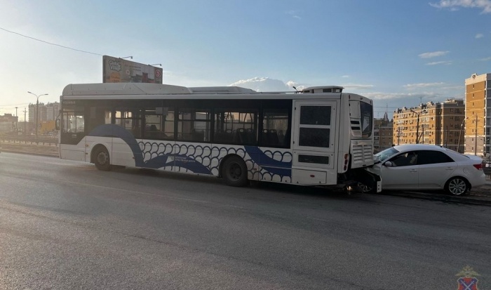 В Волгограде иномарка врезалась в стоящий на дороге автобус