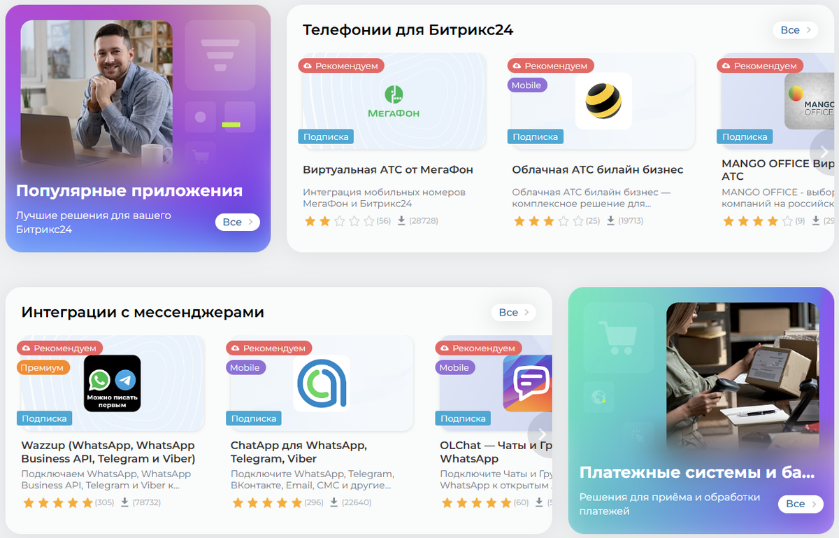 Битрикс24 Маркетплейс — это обширный каталог приложений, предназначенных для расширения функционала Битрикс24 и адаптации системы под специфические потребности бизнеса. Запущенный в 2014 году, он предоставляет пользователям доступ к более чем 4000 приложений, охватывающих различные сферы: от интеграций с мессенджерами и социальными сетями до инструментов для автоматизации бизнес-процессов и аналитики.