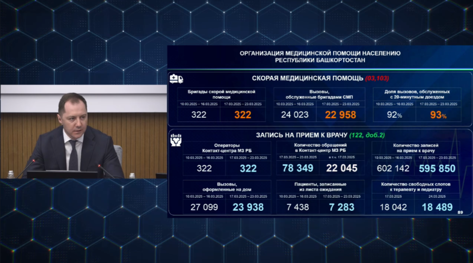 На стационарном лечении находятся 76 человек. За прошедшие сутки в республике выявлено 25 случаев заболевания коронавирусом. Об этом на оперативном совещании в ЦУР РБ сообщил министр здравоохранения региона Айрат Рахматуллин. На стационарном лечении находятся 76 пациентов. Свободный коечный фонд составляет около десяти процентов. За неделю, с 17 по 23 марта, бригады скорой помощи совершили 22 958 выездов. В 93 процентах время прибытия не превышало 20 минут. В контакт-центр минздрава РБ поступило более 78 тысяч обращений. Фото: ЦУР РБ.