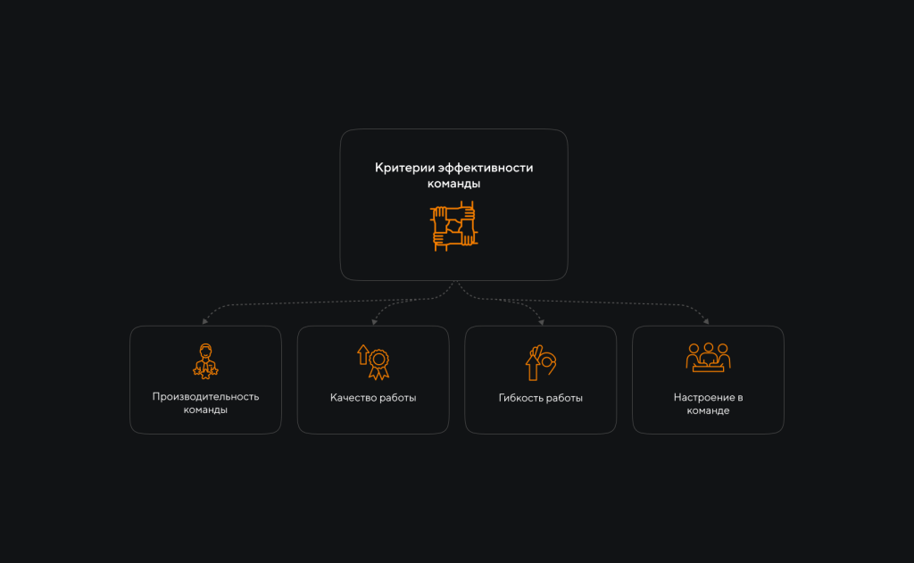 Эффективность команды складывается из различных критериев. Причем к каждой команде нужно найти свой подход, быть эмпатичным руководителем. Перечислим основные критерии, по которым можно судить об эффективности команды: