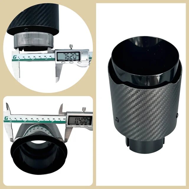 Одиночные насадки на выхлопную трубу изготовлены из настоящего углеродного волокна, что обеспечивает их высокую прочность и долговечность. Глянцевое серебряное покрытие придает изделию впечатляющий внешний вид, подчеркивая стиль автомобиля и его внимание к деталям. Благодаря универсальности конструкции, насадки подходят для различных моделей автомобилей, легко устанавливаются и создают завершенный спортивный или премиальный образ. Точные пропорции длины и ширины изделия гарантируют эстетичное сочетание с выхлопной системой.
