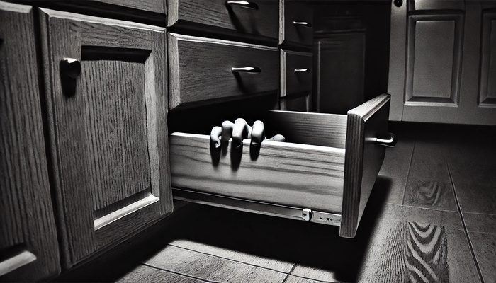 Я готовила ужин, когда услышала, как выдвигается ящик. Звук металла по направляющим.