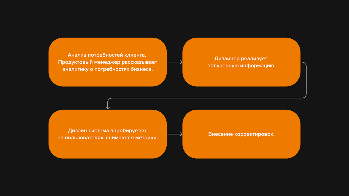 Разработка дизайн-системы идёт параллельно с созданием MVP проекта, после чего проводится сбор обратной связи, чтобы оценить UX, и вносятся корректировки.